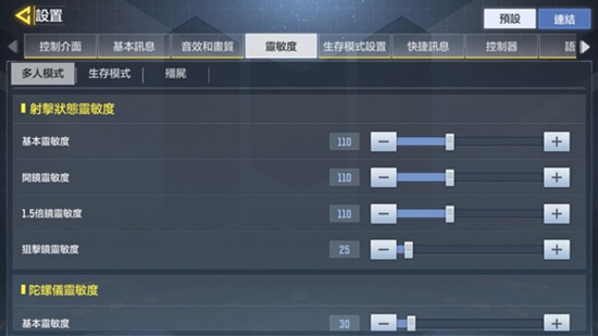 游戏拥有两种基本操作设置,通常大家都会选择进阶模式,进阶模式拥有更细致的准心设置,可针对不同枪械采用特定的瞄准调整,具体如下:除霰弹枪之外,其他全部选择开镜