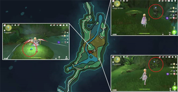 5:离开洞穴,借助四叶草飞上去,然后跟着指引从西边出去,使用刚刚得到的道具,然后修复草元素方别激活即可;