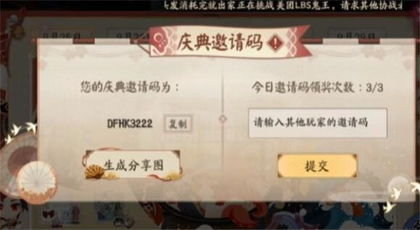 3、接着会出现庆典邀请码的活动框,输入正确的邀请码即可获得奖励。