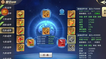 4.星空战甲:套装激活以后,加的属性非常适合pvp战斗,比如这个版本的女幻舞,银缕战甲提高闪避率使幻舞无限回血,pvp减伤!金缕战甲增加暴击几率和pvp伤害,这都是打架必备属性!虽说加的战斗力少,但是跨个几千万逆袭没有问题,星空战甲可以说是打架必须!攻防兼备!