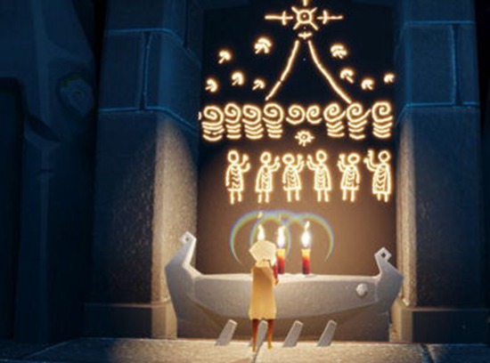 走到他身边,点击出现的图标会获得一个蜡烛,也就是“光的献祭”,以及一个爱心。