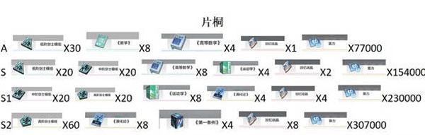 3:s1需要中阶剑士模组20、高阶剑士模组20、运动学8、演化论4、回忆结晶4、算力230000;
