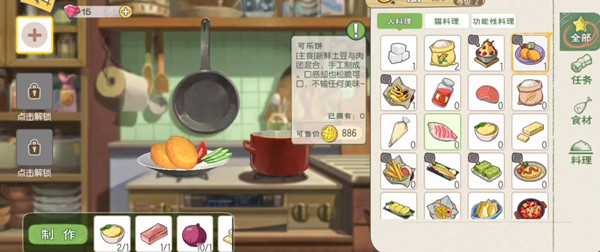 如果大家料理满级的话那么推荐制作五色蔬菜,这样一道料理售价就高达1W3,这样一来大家就算是无限制的烹饪该道料理每天也能赚个盆满钵溢,并且烹饪不需要大家跑来跑去,只需要提前将食材准备好就可以了。