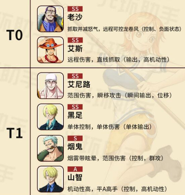 更新:2025-02-17 浏览:416+次在航海王热血航线中角色是非常多的,但是不同的角色强度肯定是有所不同的,那么大家知道有哪些角色是比较强势的呢,今天就让小编来带大家看看吧。
