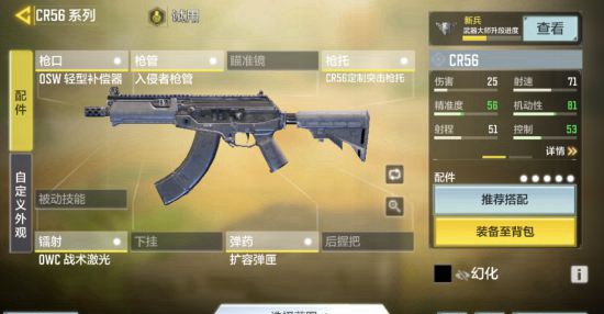 扩容弹匣,增加它的续航能力。如果有大佬说我枪法好,不需要弹匣。那大佬可以把这个配件换成cr56定制枪托。