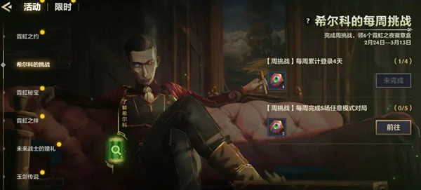 2:一共是两个任务,第一个任务是周挑战,每周累计登录四天,这个就很简单,登录游戏四天就好了;