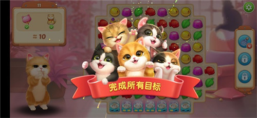 在玩家进行消除游戏的同时,旁边不仅会有呆萌小猫在旁玩闹,成为你继续闯关的动力。还能在闯关之余,让玩家们体验剧情,收获全新的小猫,给这些小猫“云铲屎”“云换衣”,是不是比现实里养猫要好多了呢?