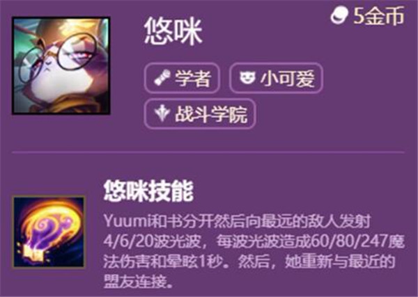 在云顶之弈S6赛季中很多英雄技能发生了变化,其中有一个英雄叫做悠咪,那么他在S6赛季中的技能是什么样的呢,今天就让小编来带大家看看吧,希望可以帮到各位玩家。
