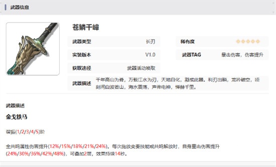 6、这把武器属于今汐的专武,使用后可以提高12%-24%的全属性伤害加成。