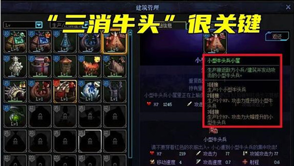 1、首先我们选择小型牛头小兵小屋、女神塔以及电磁塔;