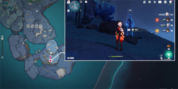1:在常夜状态下的图示位置,可以找到明石的残影,然后就经过npc的对话,抱怨自己怎么的都射不中,让我们也来试试等等之内的;