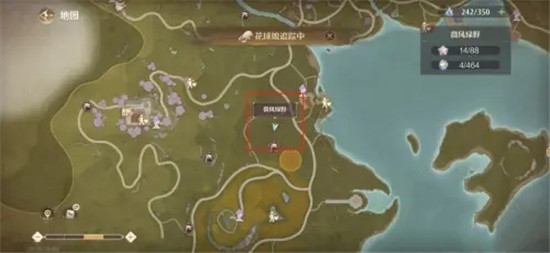 1、进入游戏界面愁特, 打开地图,来到微风绿野箭头位置处