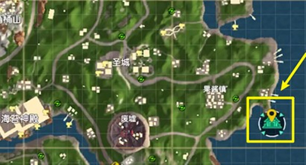 2:我们在跳伞的时候可以直接去哪里,神仙客栈中有丰富的资源,而且还有一些特殊的玩法让你争夺武林大会,客栈的内外都有宝箱的,我们都可以去获得物资,总言之如果你想去这里,在你准备的阶段可以打开小地图看一看,如果有下图的绿色的标记就说明这个地图是有神仙客栈的,如果没有显示的话就说明没有。