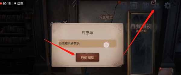 2、这时会出现一个调查墙壁的选项,接着大家只需要将任意许愿码放入输入框中即可。