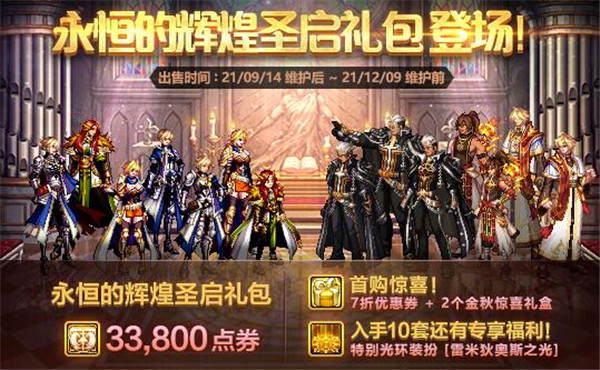 金秋的国庆礼包已经在2021年9月14日上线了,所以大家已经可以在正式服买到金秋礼包了,售价是33800点券,如果大家购买了夏日那么可以享受到折扣。