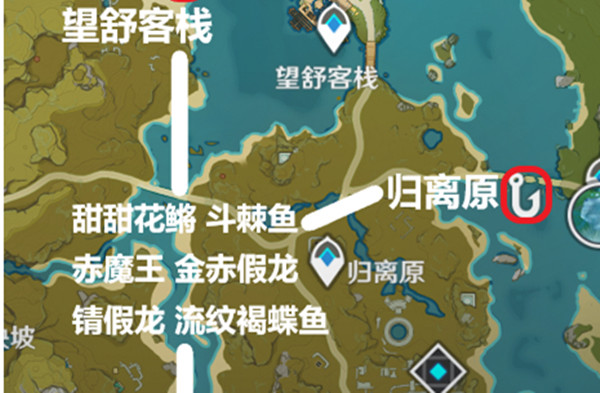 1:璃月渌华池,归离原,望舒客栈,具体位置如下图所示;