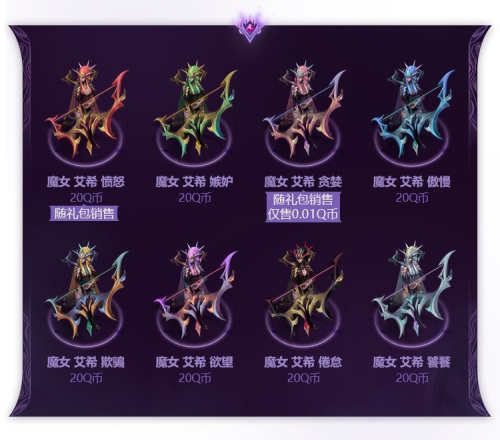 礼包包含:皮肤(8折)+图标(含载入边框)(8折)+4款炫彩(8折),【魔女 伊芙琳 贪婪】仅售1点券
