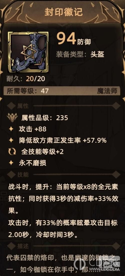 关键词:生命,总技能等级,减少自律,无伤穿透,元素抗性,伤害减少,元素伤害增加,自我攻击间隔延长。