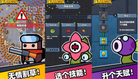 3.在收集经验球的时候,屏幕上方的经验条会慢慢上升,槽满后会升级。每次可以选择三个技能中的一个,技能可以是主动的,也可以是被动的。