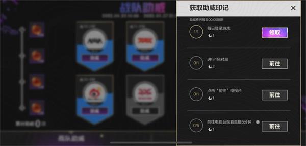 助威任务分为比赛与非比赛日,每个比赛日会额外设有观赛任务,前往电视台观看赛事直播可获得2个助威印记,观看重播回放不计入内,每日赛事直播时间请留意任务提示。