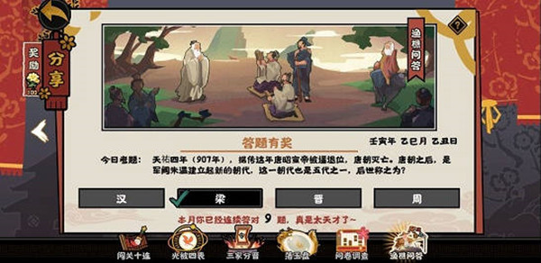 3:在无悔华夏游戏中每天都会有新的问题出现,这些问题基本上都是一些历史的问题,可以帮助我们学习历史,当然了也有一些题目是根据游戏中进行出的,你们不知道的话可以来看看小编的文章就知道答案了。