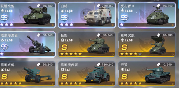 4:中期用银狐,帝国VI,美洲狮,复仇者,TOE,希神或帝国V,toe五星每天研发就好了,然后紫卡资源给银狐,橙卡给帝国VI,两个坦克王牌五,铁锤5星,进入下阶段;