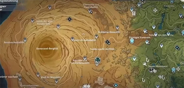 1:如图所示,这个就是3.4新地图的千壑沙地面积了,是非常大的一个地方,而且目前须弥还有一部分没有开启;