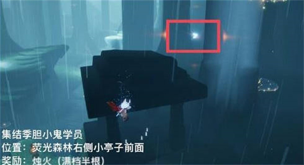 3:集结季胆小鬼学院,位置在荧光森林右侧的小亭子前面,奖励是烛火;