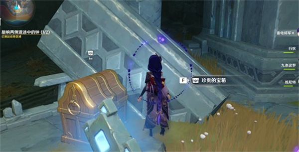 2:上方遗迹西北方,我们来到这个区域之后,点亮遗迹顶层的充能灯柱,使用纯光绽放清除黑石,清除完全部黑石之后就会出现怪物,击败之后敲响钟即可,下方遗迹东南方,来到该区域分别解锁一个灯柱和黑泥,这个区域的两只仙灵分别照亮两处灯柱,来到一处阳台上,点亮灯柱后就会出现一个珍贵的宝箱,还有向上的风场和一个仙灵,跟随仙灵解锁上方机关后再次跟随仙灵来到下层,清除黑泥击败遗迹敲响钟即可;