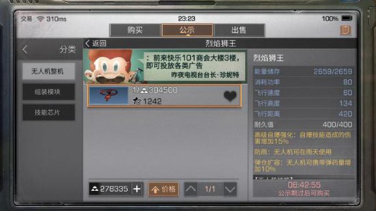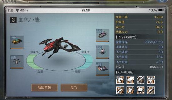 战斗系列这是目前最强无人机,无论是抄家还是打架它都是主宰,初始火力0.6,60发子弹掉一个耐久,两个导弹掉一个耐久,决定了它的寿命不长,单纯24000发一个无人机就没了,战斗分子手中寿命撑不过两三天,不过新的模拟赛可以考虑入手一架。