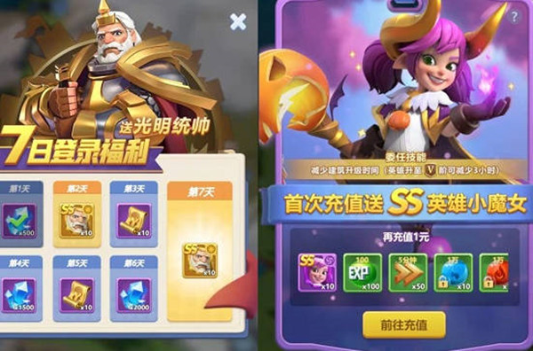 我们在游戏中可以参加活动,开区首日在线就可以领取伊贺女忍,登录的第二天就可以领取ss级别的光明英雄光明王,然后首充任意的金额就可以领取ss级别暗系的英雄小魔女,开服第二天解救战争圣女活动可以获得ss级别的水系英雄战争圣女;