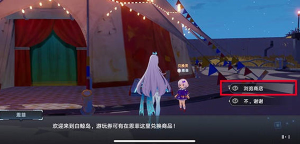 4:点击恩菲和他进行对话,然后我们再点击浏览商店;