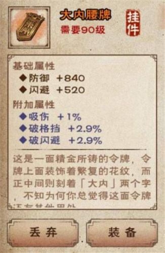 2、在挑战boss叶公公之后,将会有概率掉落大内腰牌。