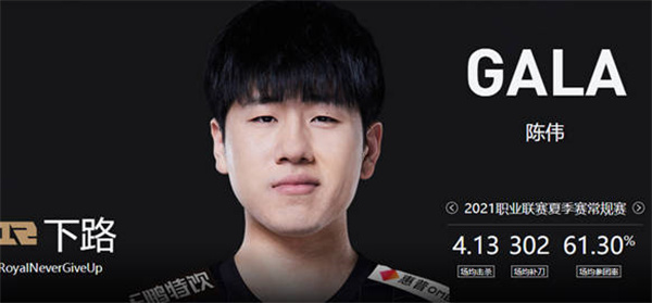 简介:陈伟(游戏ID:GALA),2001年2月14日出生于河北省沧州市,英雄联盟职业选手,司职ADC,效力于RNG电子竞技俱乐部。