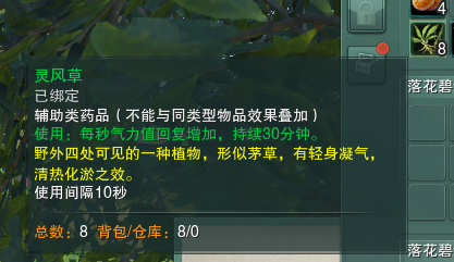 村子里的灵风草是个好东西,吃了可以加速气力值回复,而且没有携带上限,CD10秒,持续30分钟,可以带出稻香村用。