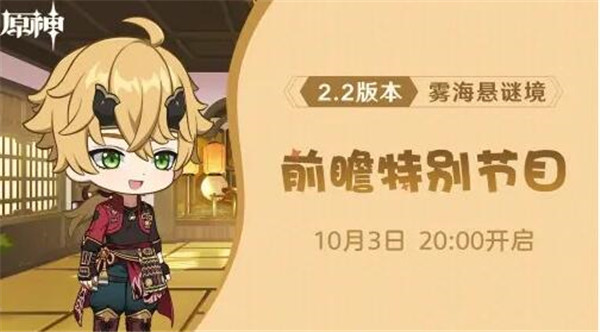 在原神中一般新版本的开启之前都会有一个前瞻直播,很多玩家想知道2.2前瞻直播什么时候开始,那么今天就让小编来带大家看看具体的直播时间吧,希望可以帮到各位玩家。