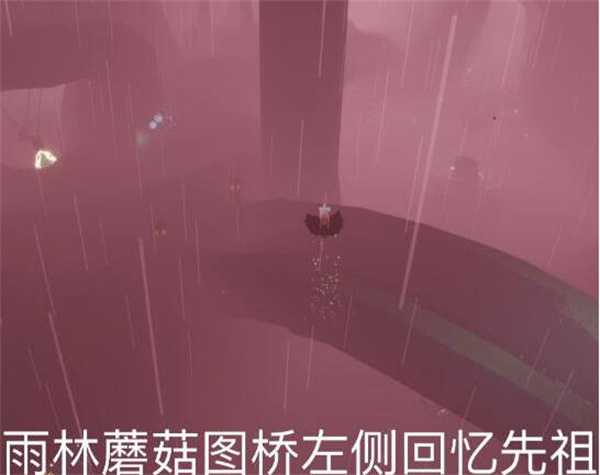 2:第二个任务,在雨林重温先祖美好回忆,我们在雨林蘑菇图桥的左侧点燃先祖进行回忆就可以完成了,如图所示;