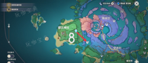 二、渊下宫地区点位2(7只):传送到「蛇肠之路」锚点。