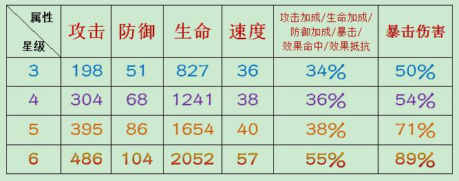 对于暴击/速度/攻击加成,要根据副属性灵活选择3~5星,不要歧视3星;(不过大多数情况下,暴击也没得选,出什么用什么)