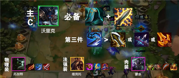 这个阵容中狼人是一个主C,因为狼人是低费卡,所以前期就可以直接给装备养起来了,有装备的狼人在前期的战斗力还是很强的,然后这个体系需要大家把狼人D到三星。狼人三星之后就升人口去把阵容补齐,其他英雄一般来说2星即可,如果大家坦度不足的话可以尝试把蒙多也D到三星。