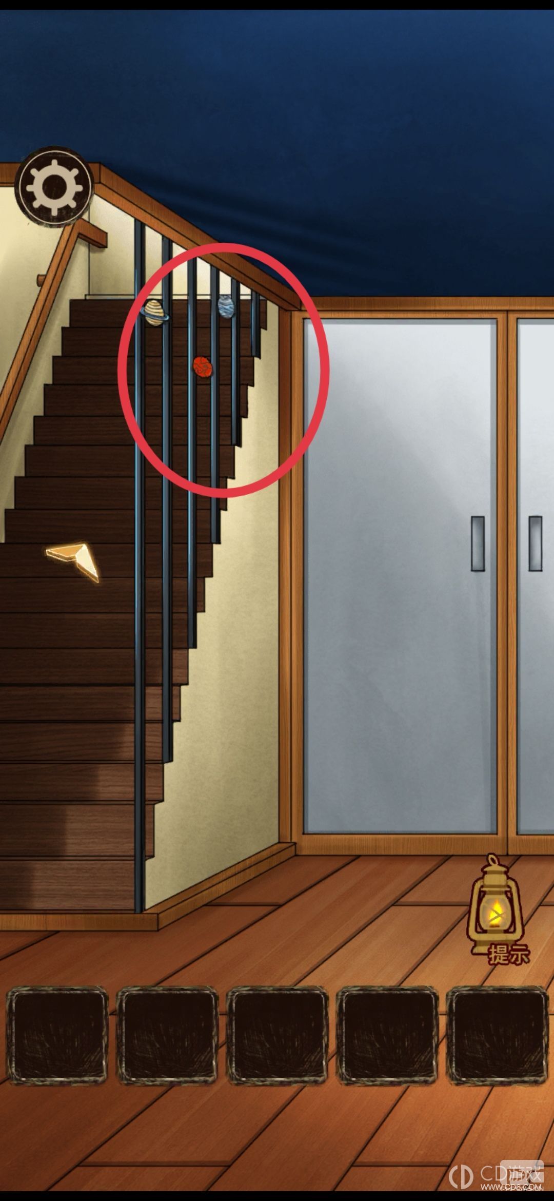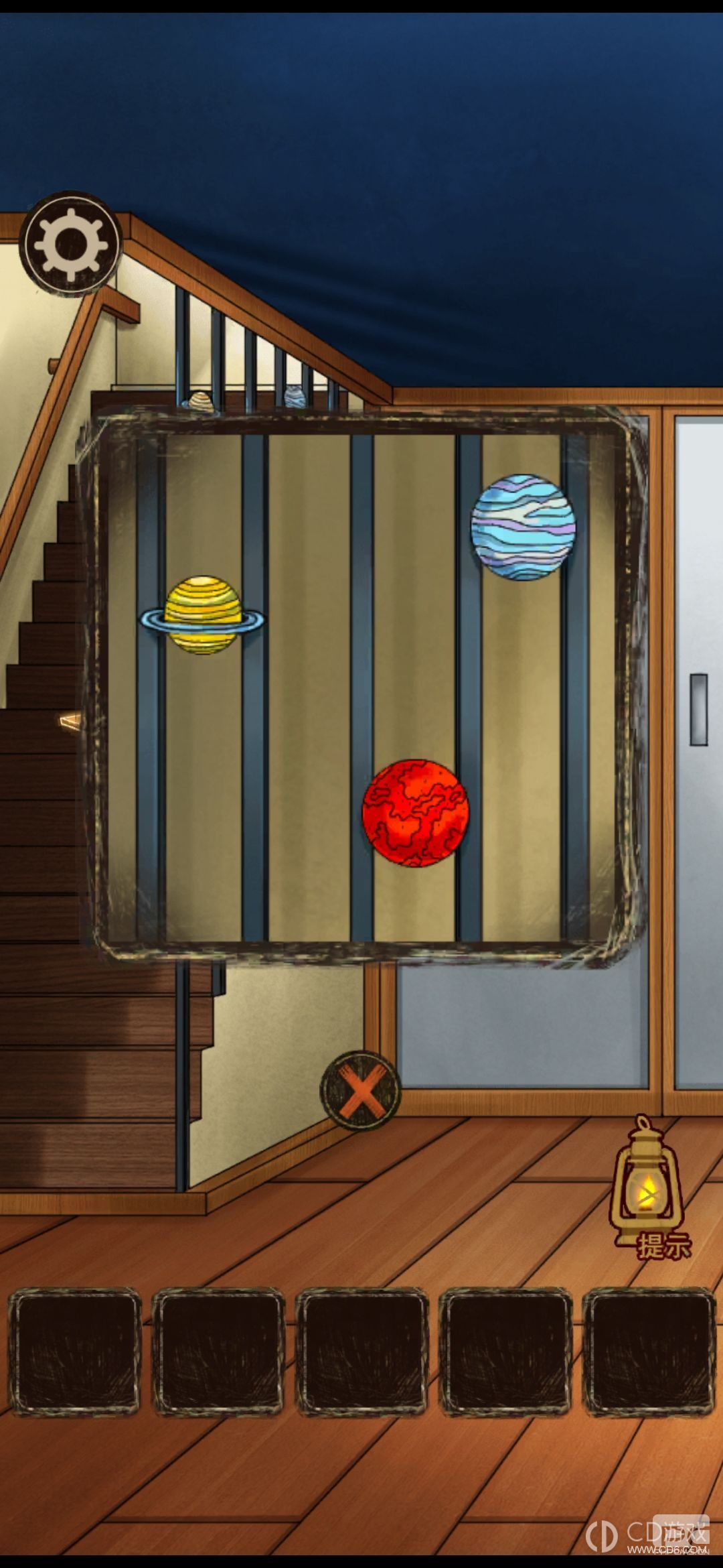 看楼梯扶手上的星球,回到院子,打开窗户(这个东西是看列的,黄色在第一列,所以在最上面)