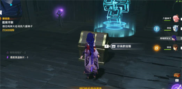 1:仙狐之章开启条件是冒险等级达到四十级以上,完成魔神任务,第二章第三章千手百眼天下人间,而且完成雷电将军传说任务,天下人之章,第二幕须臾白梦,这个副本中一共有六个宝箱,下图是一号宝箱位置;