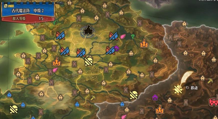 4、第四张藏宝图宝藏的位置来到古代魔法阵中级2的右下角,在这里的树林中一座山脉的右侧就可以获得宝藏。