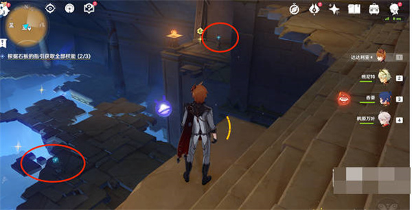 3:然后我们送第二个,我来到渡厄厅的传送点,在右手边,可以看到一个发光的基台,我们前去释放,还是一路跟随,但是要注意风扇,送回原位即可;