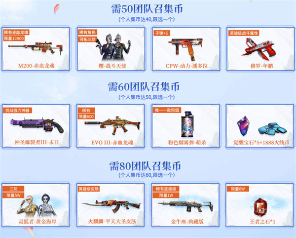 1:活动的时间是在3月1日的时候开启的,同时可以兑换的奖励有很多灵狐者-黄金海岸、钻石手雷、胡萝卜匕首、小刀-神秘黑洞、樱-战斗天使;