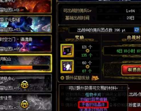 最后一种获得矛盾的结晶体的方法,就是【佣兵】。运气好的话,可以大量获得额外奖励中的矛盾的结晶体。