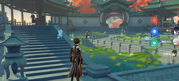 1:首先我们在进入秘境前任务选择,最好是有一个带盾的,比如钟离这种角色,还有一个奶,一个c位,其他的角色你们自己看着带;