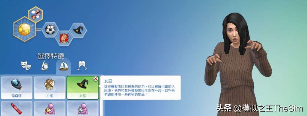 这是个特征类的种族mod,要先选择女巫/男巫的特征