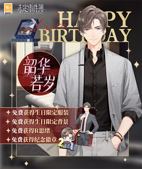 韶光流转,相伴岁月。4月18日,「韶华若岁」限时活动开启。全新生日SSR思绪开放获取,生日限定剧情公开,多样福利解锁。许下真挚诺言,共度特别时光。与他共庆生日吧!