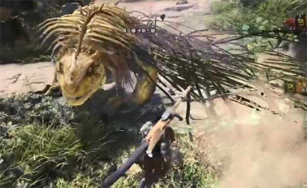 2、在他旁边进行骑乘,这里的骑乘需要大家用小刀一刀一刀戳;
